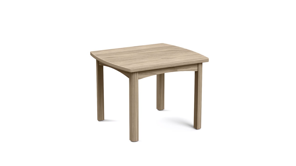 The Arcadia End Table helps round out the Arcadia Lounge Series with a minimal, yet classic design. An apron leg-base creates a sturdy foundation for the laminate table top.