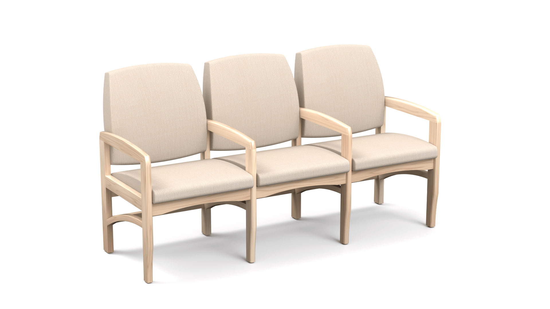 Perfect for waiting rooms and reception areas, the Boardwalk 3-Seat Chair with Leg Base features a solid maple leg base frame, security hardware, and an antimicrobial topcoat. Upholstered seat and back cushions feature two-layers of high-density foam and elastic seat webbing.