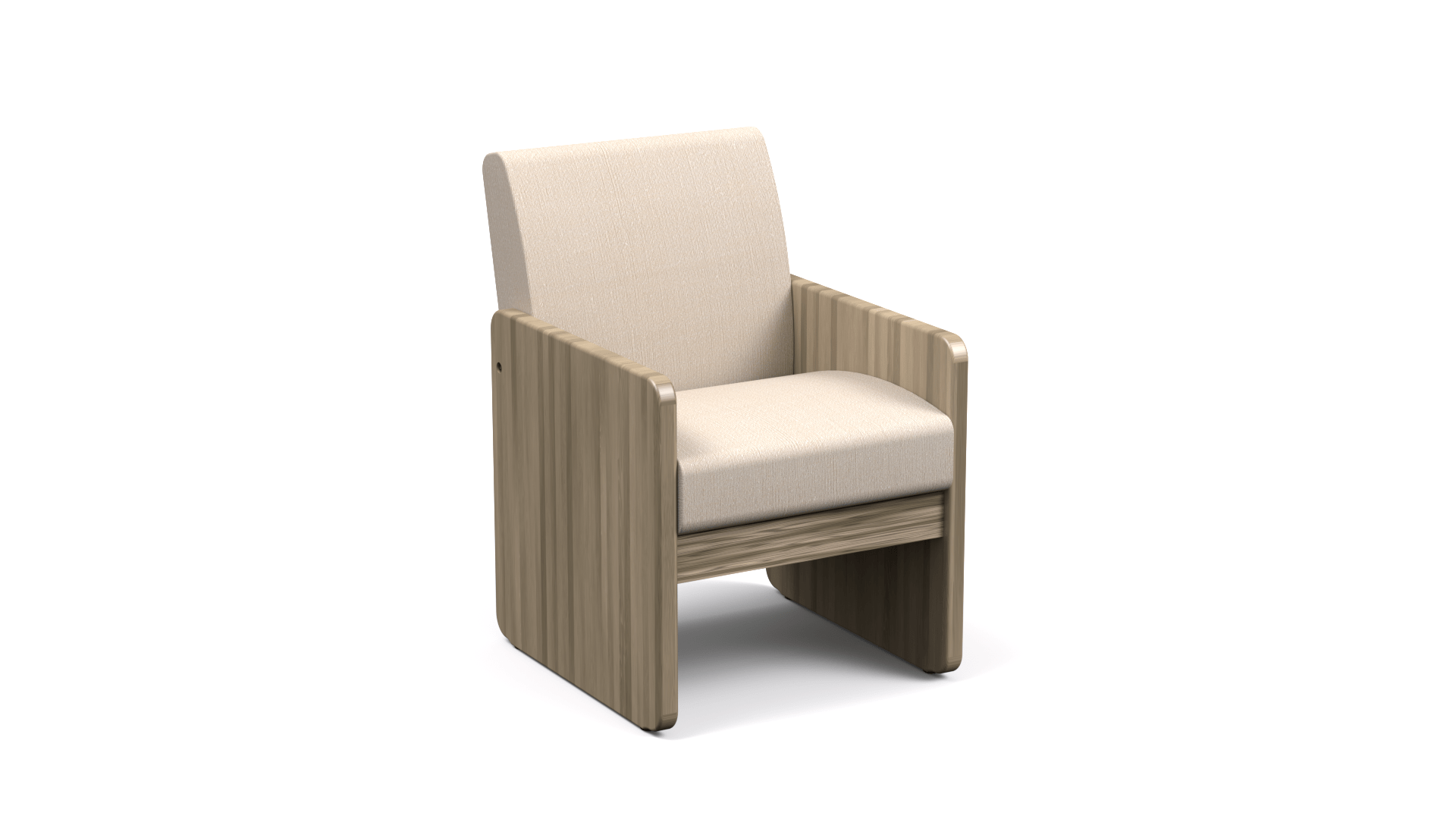 The Sherman Chair is a mid-sized arm chair designed for tough environments. Featuring an oak butcher block frame and fixed upholstered cushions, the Sherman is a tank of a chair.
