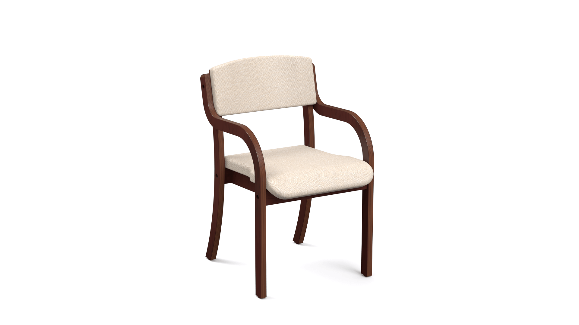 The Stackable Arm Chair has been redesigned using Betula Plywood. This new construction promises incredible durability, while providing a more contemporary look. It has a natural finish and features an upholstered waterfall seat, two-piece upholstered back and slender modern frame.