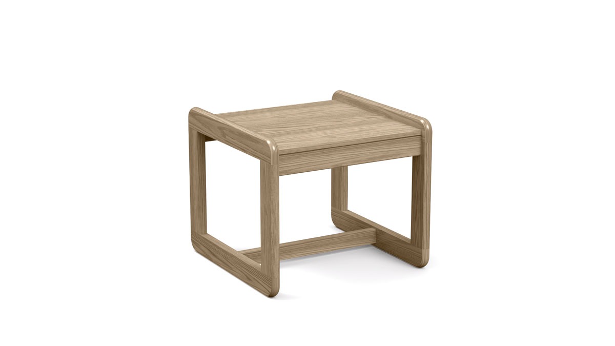 Constructed of solid oak, the Synergy End Table features a laminate top with a 2mm PVC edge, sled base and an antimicrobial topcoat.