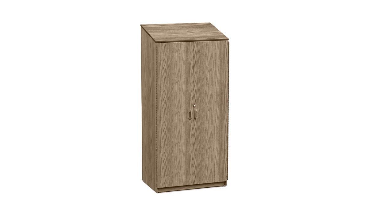 - Sloped oak veneer top
